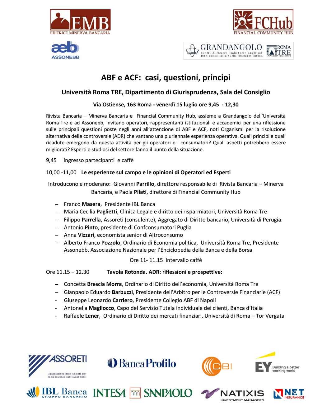 Antonio Pinto relatore al Convegno di Università Roma 3: "ABF e ACF: casi, questioni, princìpi". Ha descritto i principali orientamenti della giurisprudenza dell'ACF a tutela dei risparmiatori.