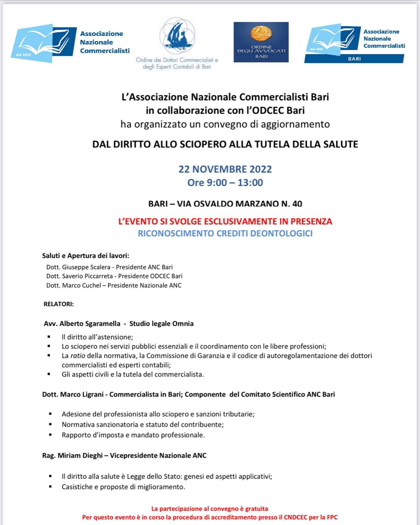 Alberto Sgaramella, relatore al convegno organizzato dall'Associazione Nazionale Commercialisti in collaborazione con l'Ordine dei commercialisti di Bari sul tema del diritto all'astensione del commercialista, aspetti civili e di tutela.