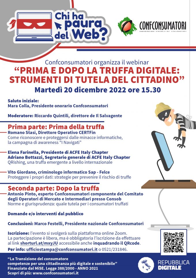 Antonio Pinto relatore nel webinar organizzato da Confconsumatori sul tema: "la truffa digitale, strumenti di tutela per il cittadino".
