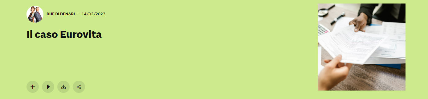 Clicca qui per ascoltare l'intervento di Antonio Pinto, ospite della trasmissione Due di Denari su Radio24, sulla vicenda della Compagnia assicurativa Eurovita.